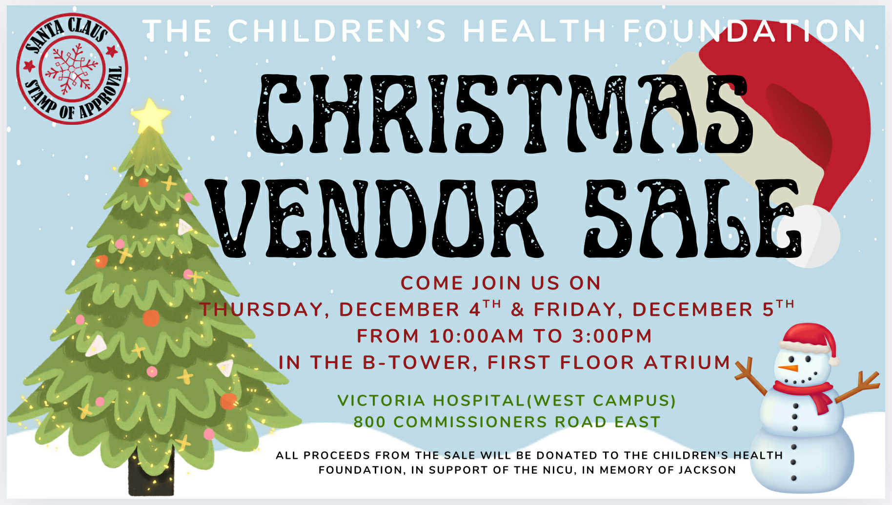 All Proceeds from the vendor sale will be donated to Children’s Health Foundation, in support of the NICU, in memory of Jackson.