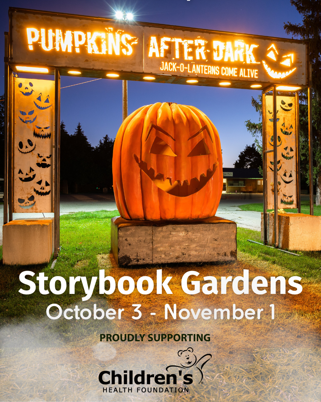 Enjoy 15% off your ticket purchase to Pumpkins After Dark at Storybook Gardens! Pumpkins After Dark is a 1km outdoor walk-through where 10,000+ hand-carved jack-o-lanterns come to life