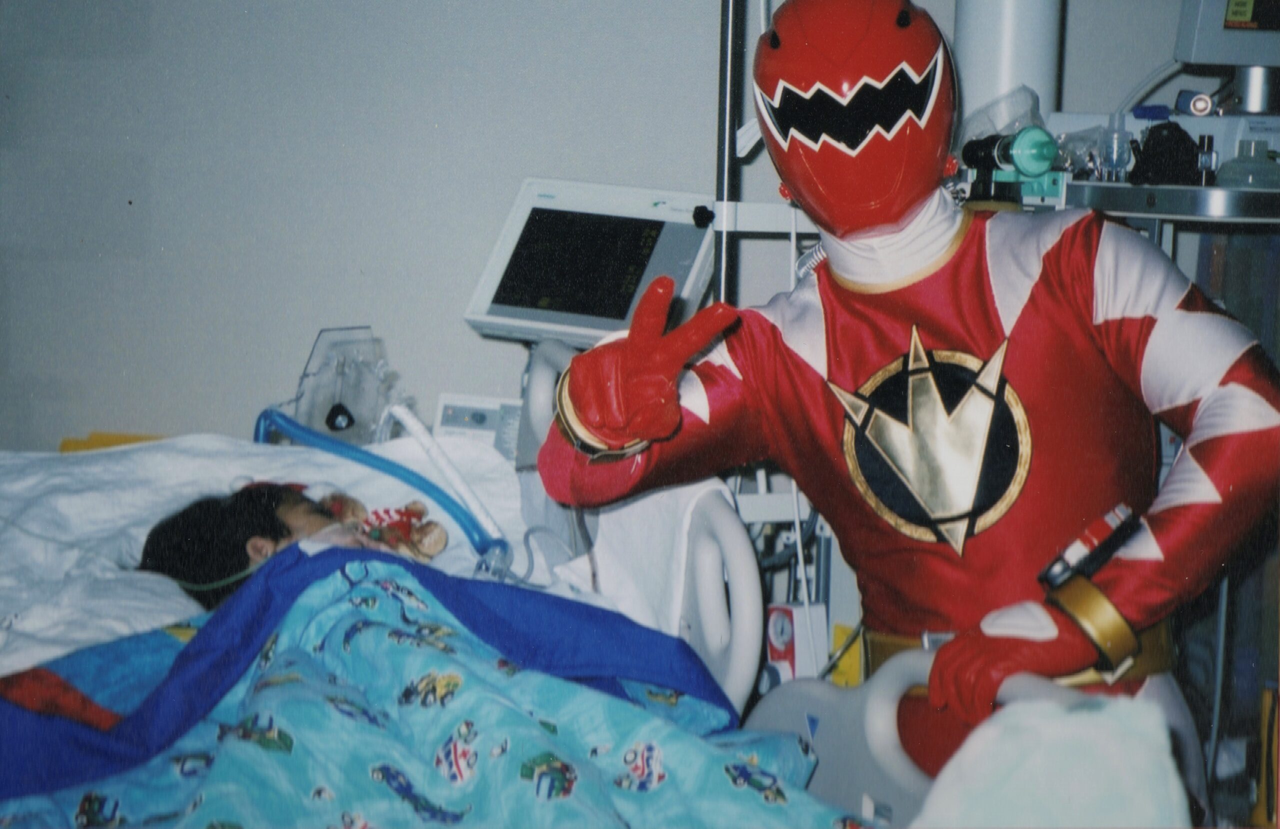 After the surgery, Robert remained in the Paediatric Critical Care Unit (PCCU) for weeks, needing an emergency surgery in that time. Unable to do much there, his muscles atrophied to the point that he couldn’t use his arms or walk. Wenda and Child Life did arrange for a visit from the Red Power Ranger — Robert’s favourite — but he was still unconscious when the cosplayer visited. They made sure to get a photo regardless.