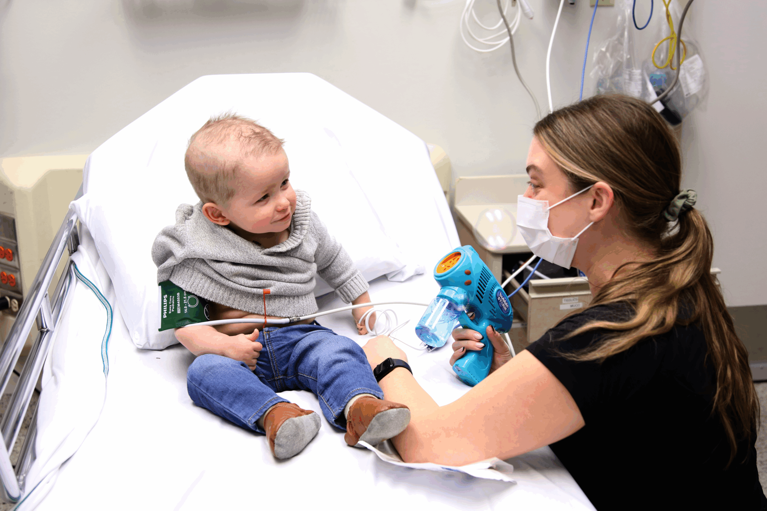 That urgency and precision carried straight into treatment. Hand-in-hand with our family, the team wrapped around Hudson, supporting him through three rounds of intensive chemotherapy, followed by three rounds of high dose chemotherapy with stem cell transplant at The Hospital for Sick Children.