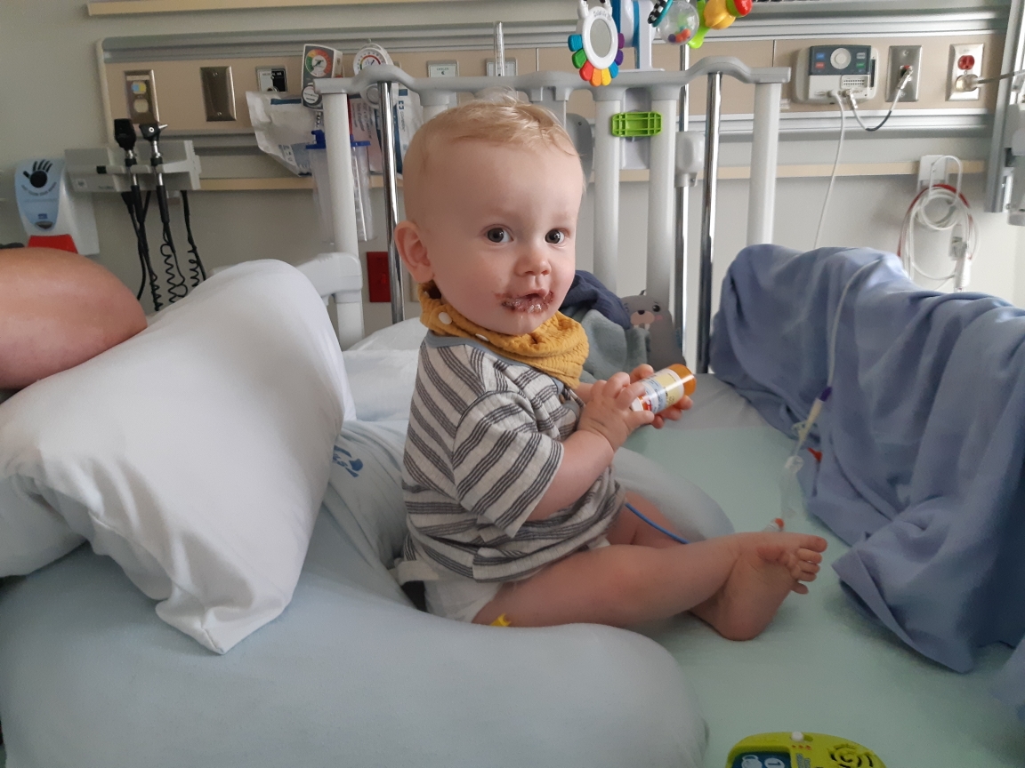 “Dr. Elise Graham in paediatric ENT was wonderful,” Katie says. “She ordered an MRI and it came back as atypical, so a biopsy was done. It is my understanding that the tissue was analyzed at LHSC, where it was a ‘strange’ case, so it was then forwarded to Sick Kids in Toronto. They confirmed Rhabdomyosarcoma, a soft tissue cancer. He was 10 months old.