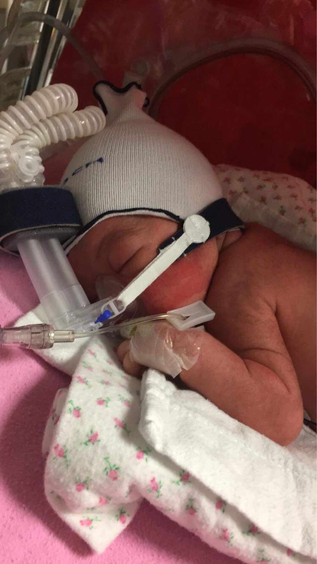 In the Neonatal Intensive Care Unit, Brinley was put on CPAP (continuous positive airway pressure) to help her breathe, and then when she was just 24 hours old, she was intubated and put on a feeding tube.